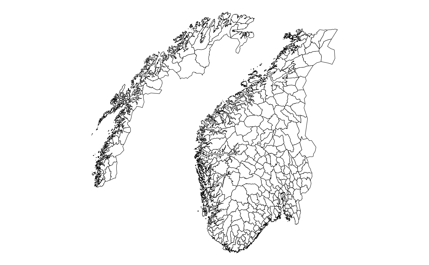 nor_municip_map_bxxxx_split_dt.RdWe conveniently package map datasets for Norwegian municipalities (taken from Geonorge) that can be used in ggplot2 without needing any geo libraries. This data is licensed under Creative Commons BY 4.0 (CC BY 4.0).
